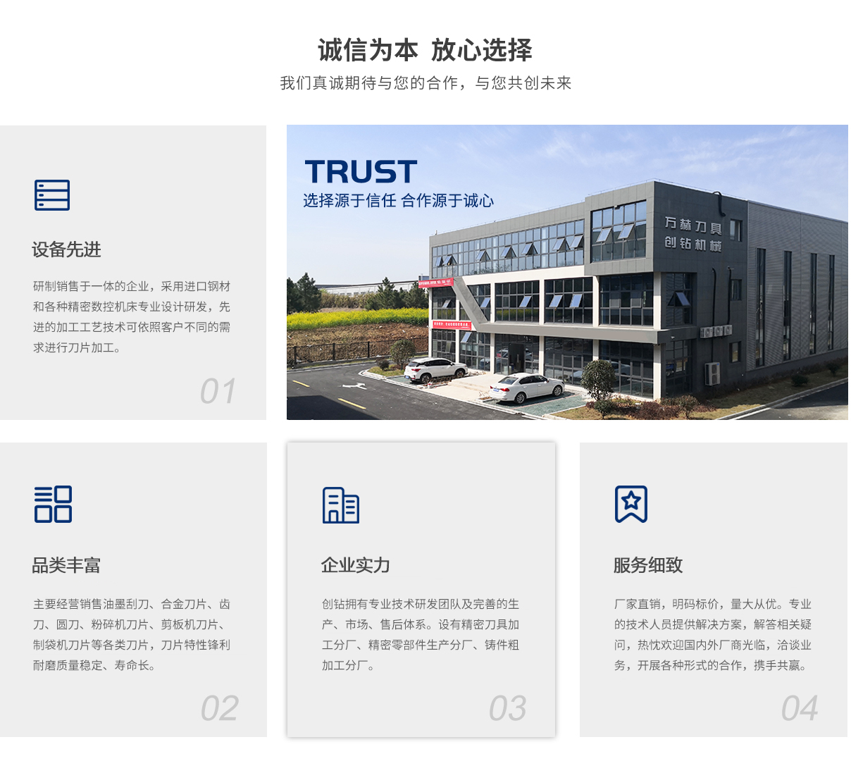 馬鞍山創(chuàng)鉆機(jī)械科技有限公司 INTRODUCTION 馬鞍山市創(chuàng)鉆機(jī)械科技有限公司(創(chuàng)鉆機(jī)械)坐落于鋼鐵之城-安徽馬鞍山,公司擁有專(zhuān)業(yè)的技術(shù)研發(fā)團(tuán)隊(duì)及完善的生產(chǎn)、市場(chǎng)、售后體系。公司設(shè)有精密刀具加工分廠、精密零部件生產(chǎn)分廠、鑄件粗加工分廠,...